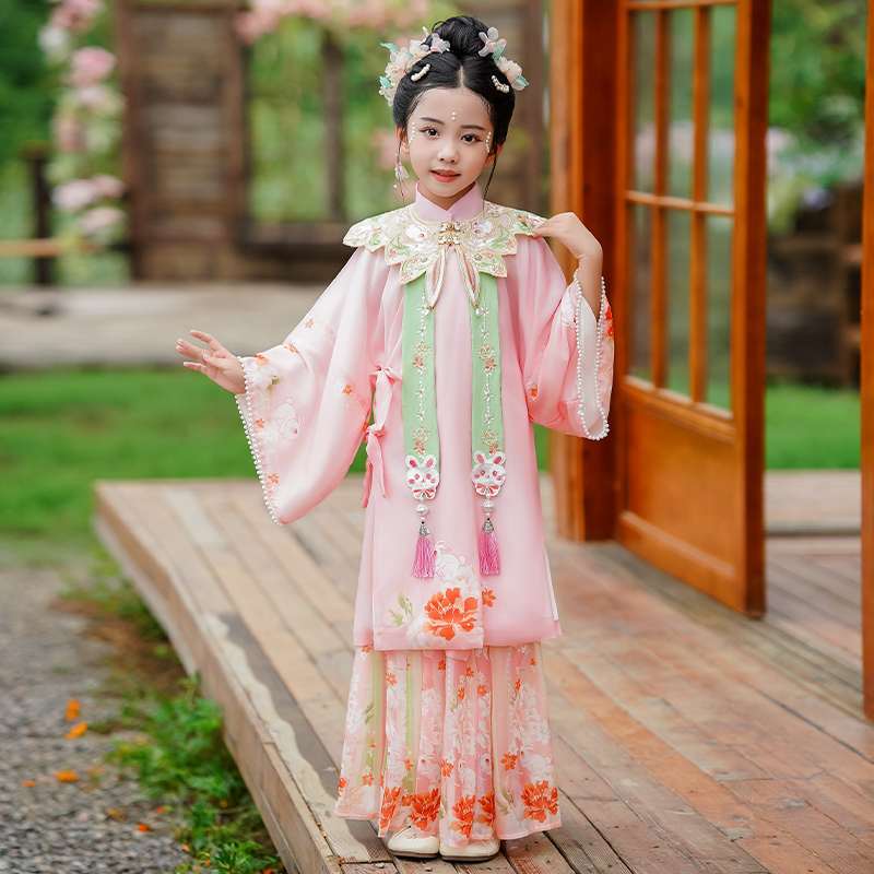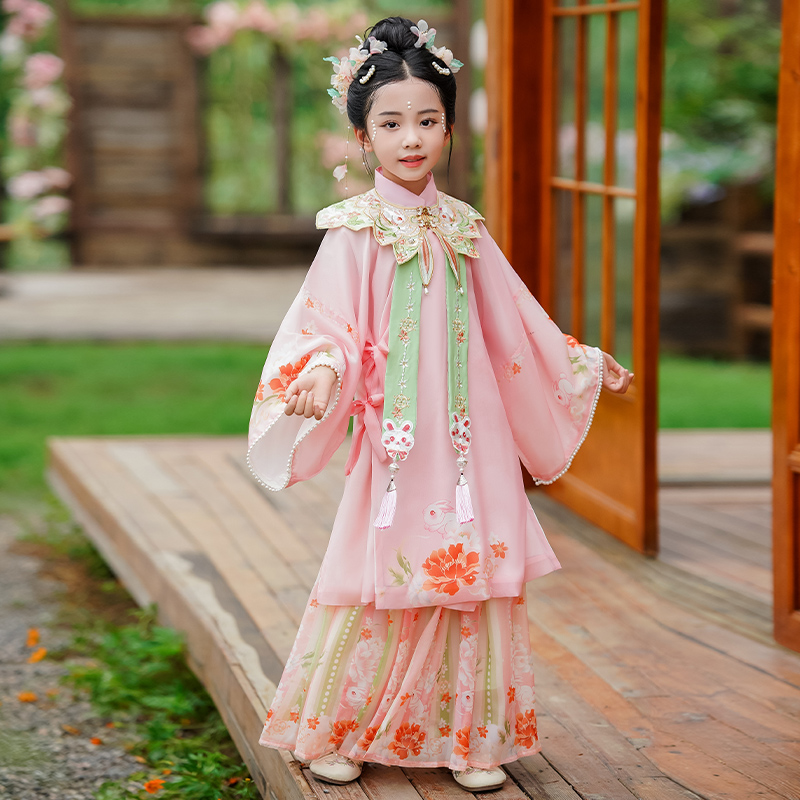 儿童春秋中秋节 2025新款 明制汉服女童套装 中国风云肩古风月兔唐装