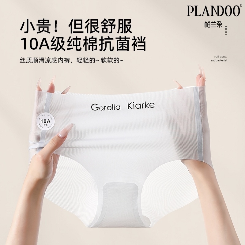 帕兰朵女士超薄冰丝凉感亲肤裸感简约无痕舒适纯棉抗菌裆三角裤