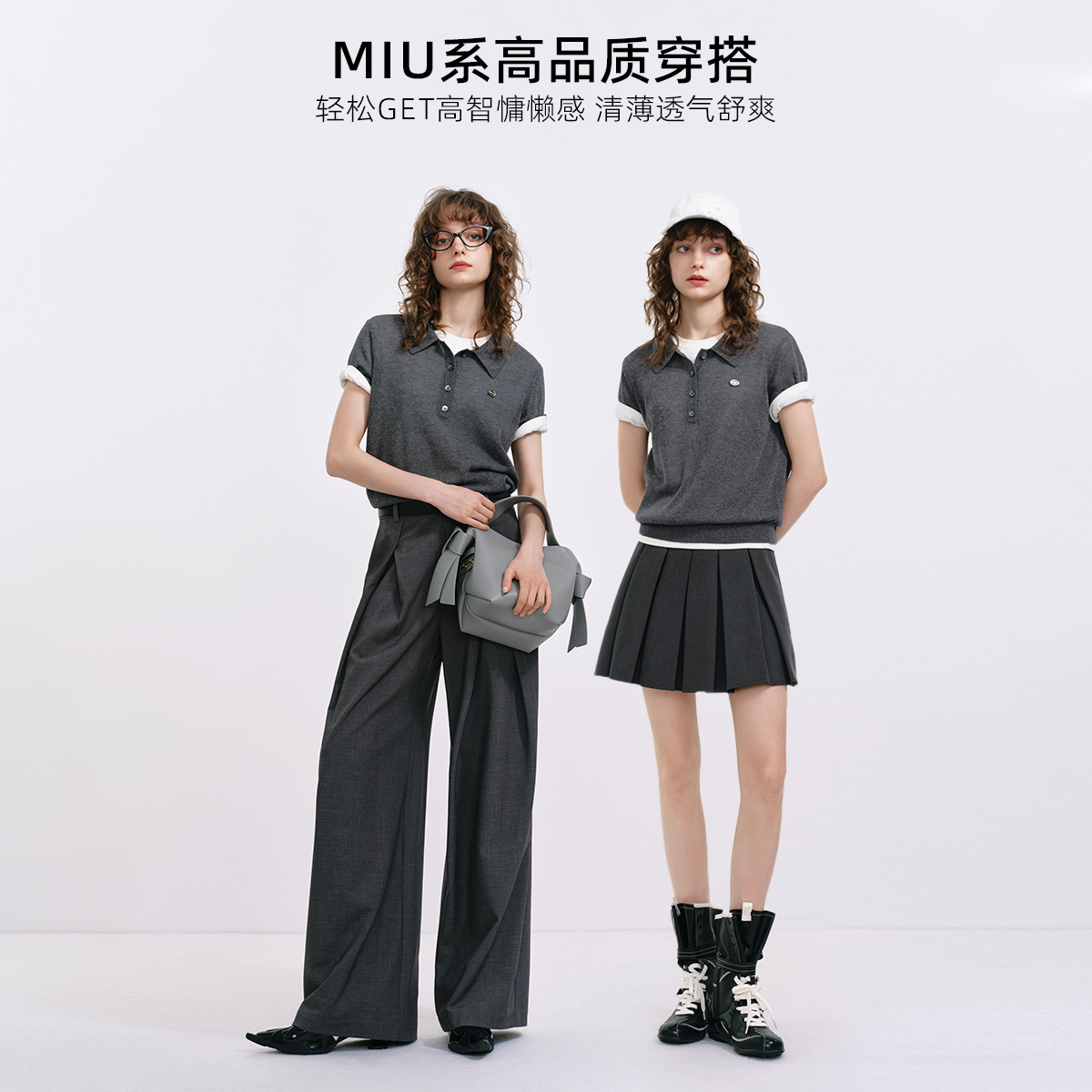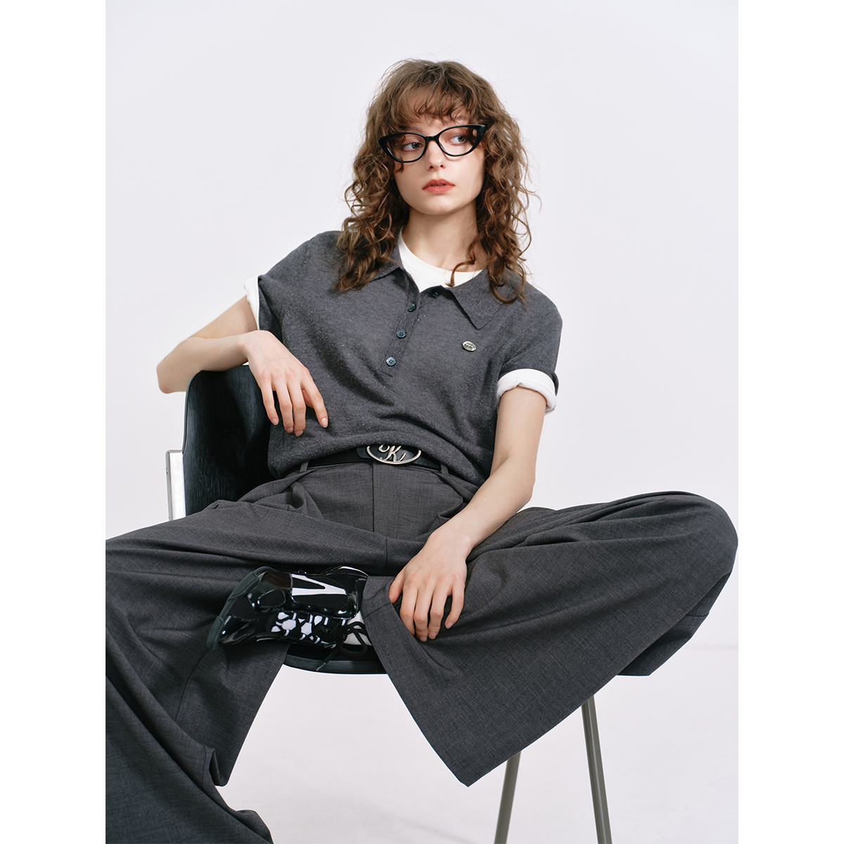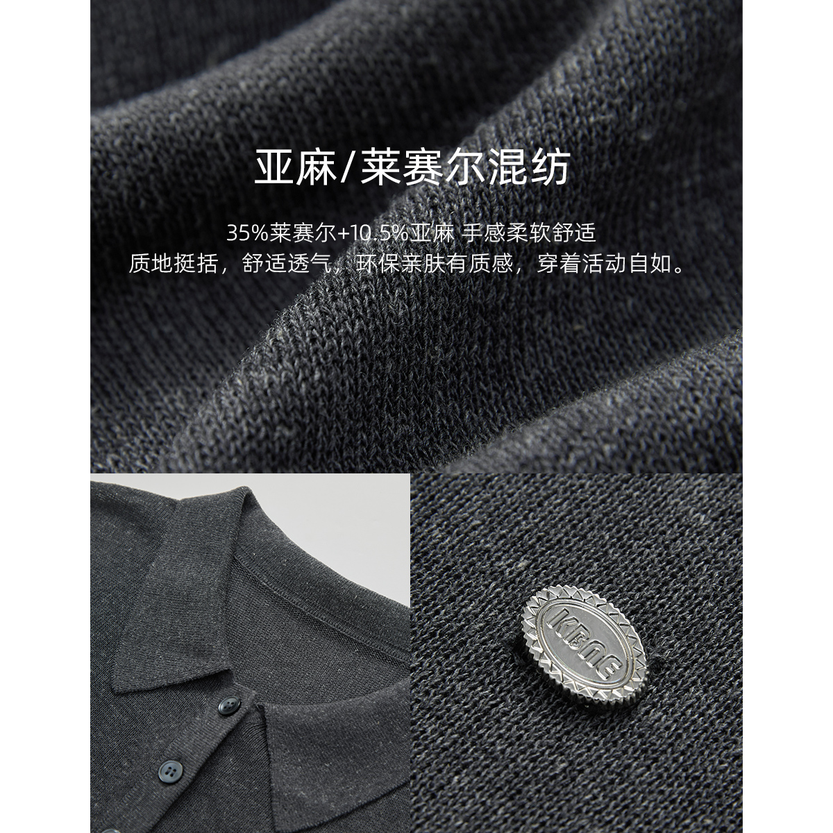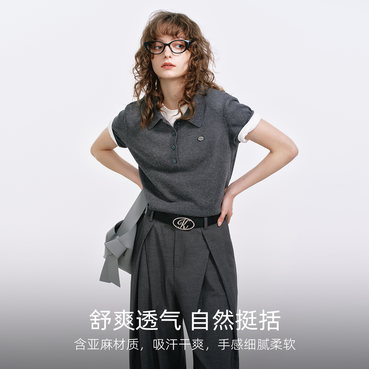 短袖 新款 打底衫 气质小衫 KBNE灰色polo亚麻针织衫 上衣女装 2025秋季
