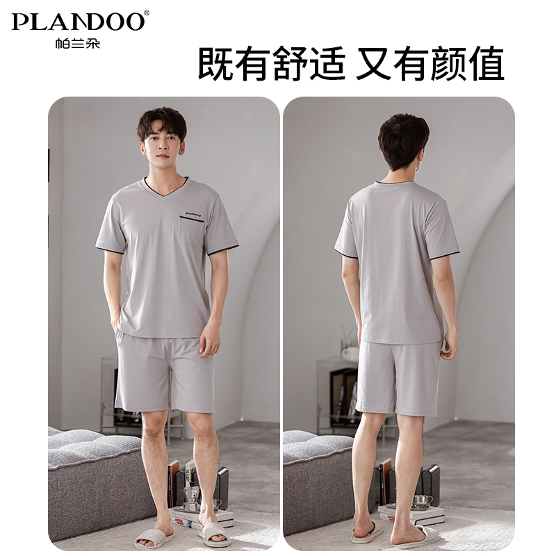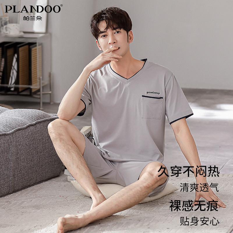 夏季 家居服套装 男士 男大码 可外穿 凉感薄短袖 帕兰朵莫代尔睡衣男款