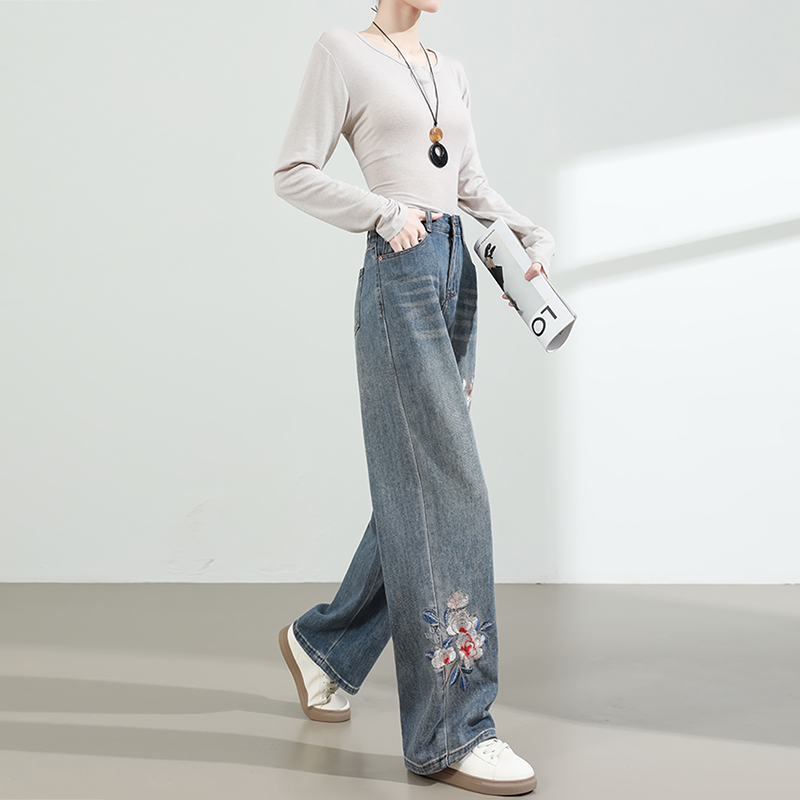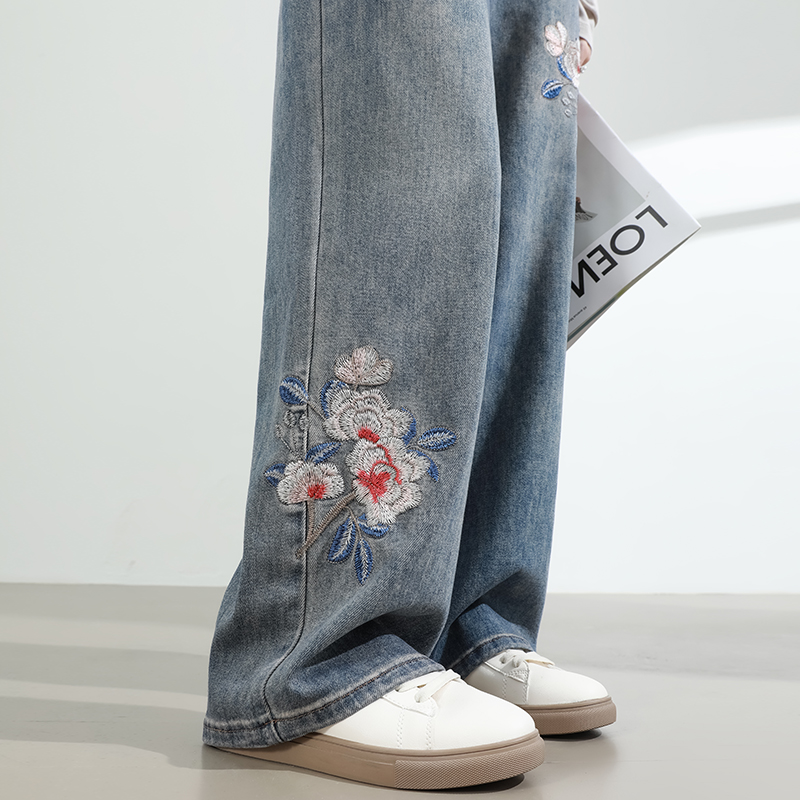加绒高腰显瘦微喇不贴腿长裤 乔栈高级感穿搭阔腿牛仔裤 女秋冬爆款