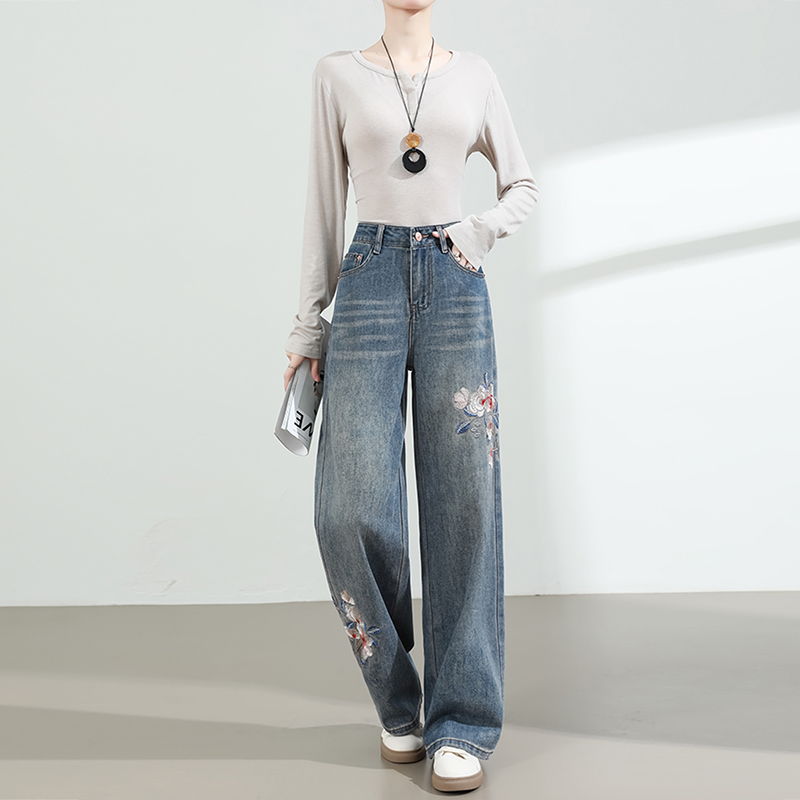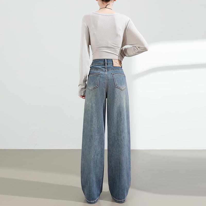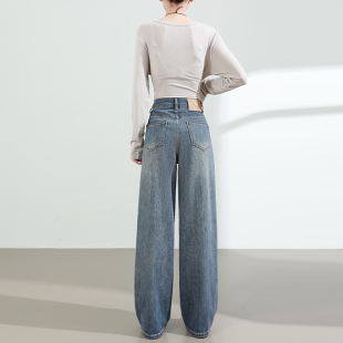 阔腿牛仔裤 高腰显瘦小个子女士阔腿裤 女夏季 2025年新款 子 薄款 窄版