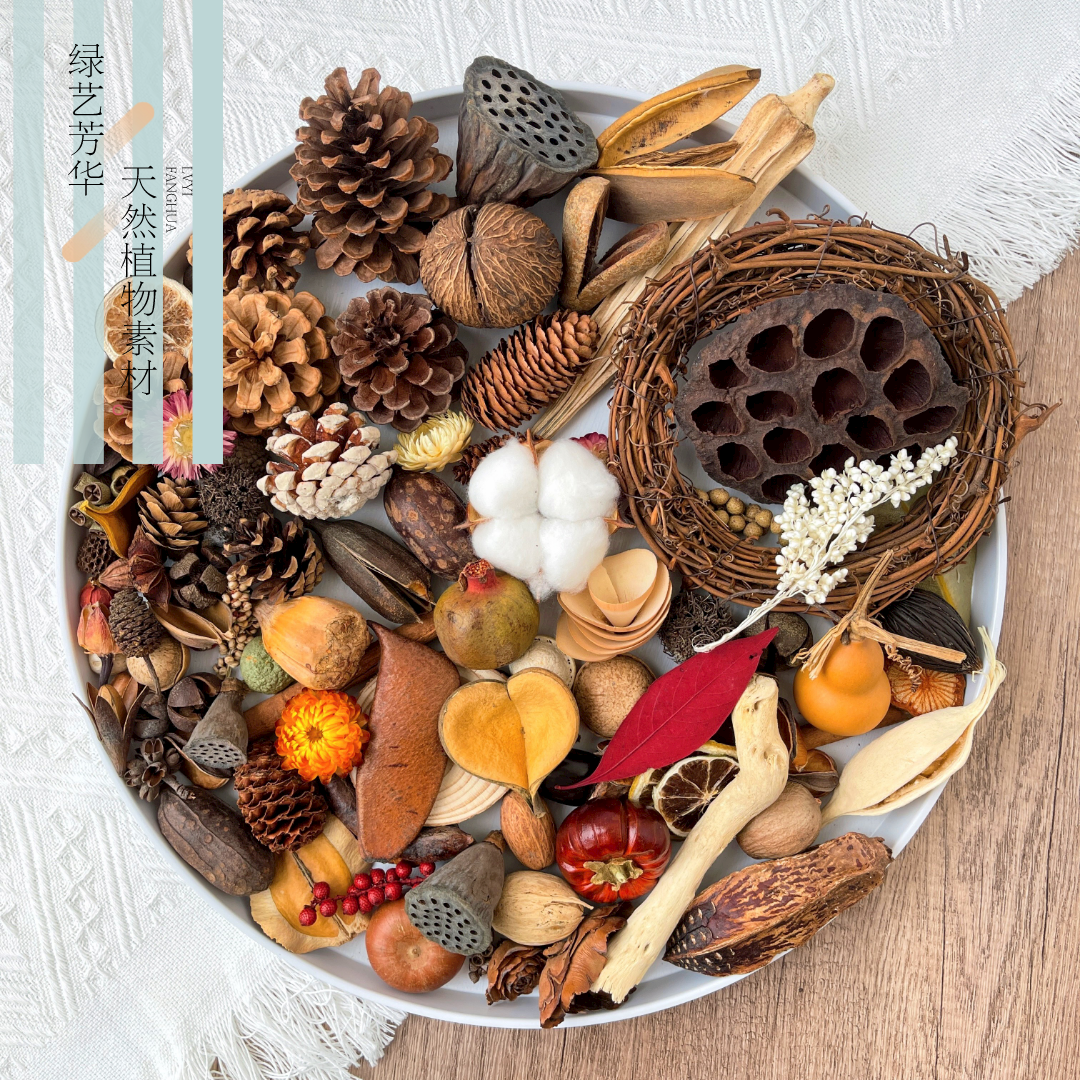 松果木片树叶干花干果组合圣诞diy幼儿园手工干花干果橡果艺术品