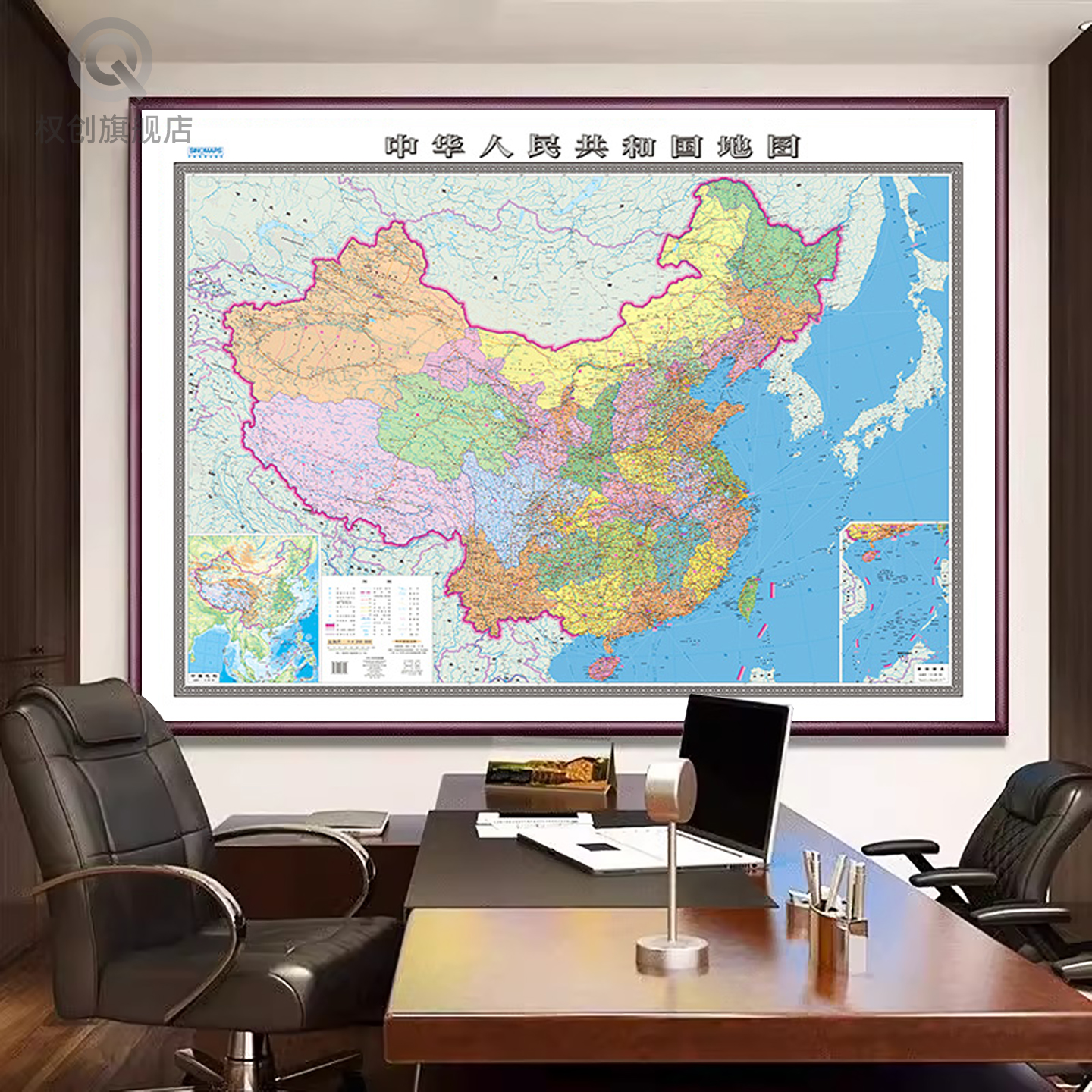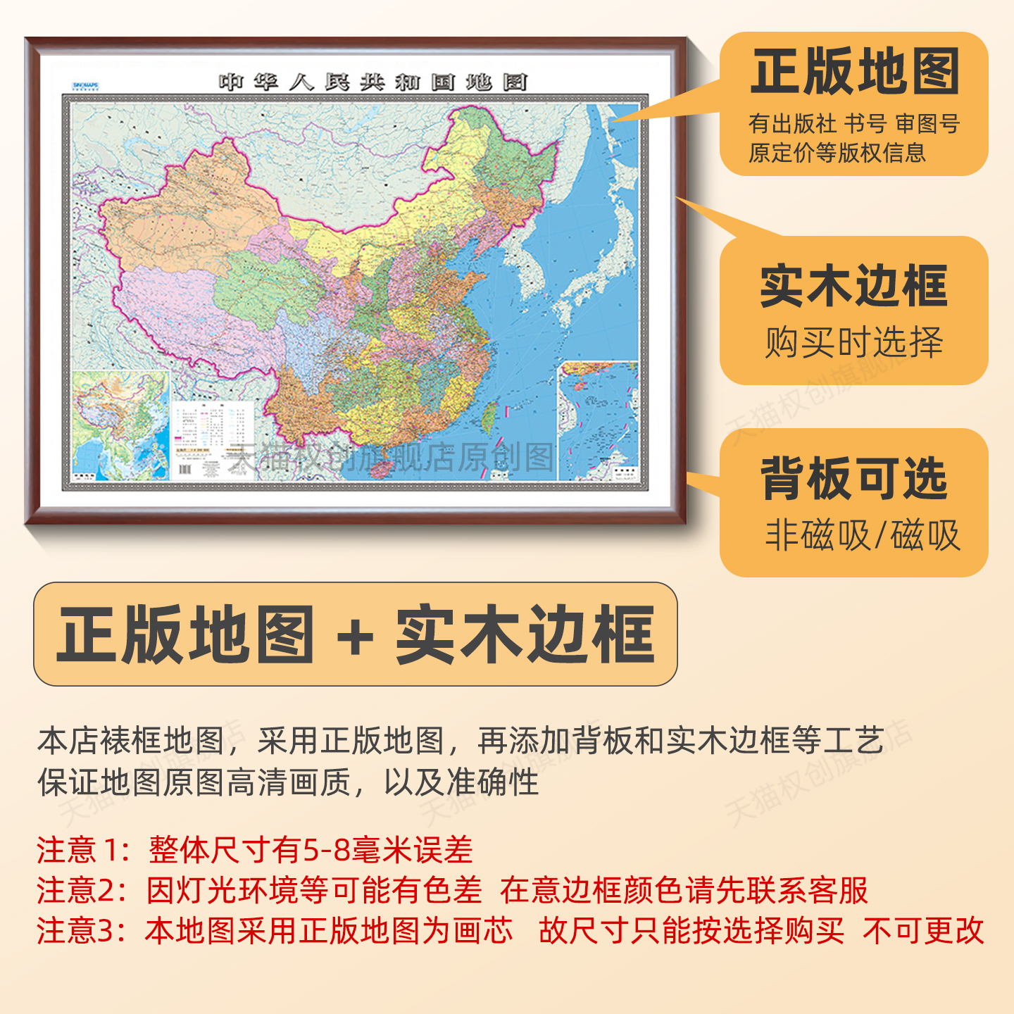 实木边框中国地图世界地图裱框装 超大定制标记挂画磁吸 饰画 家居背景墙画 大尺寸壁画 高清办公室会议室 2025新版