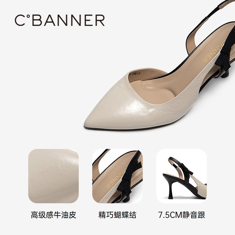 静音系列 新款 千百度细高跟时装 女2025夏季 包头通勤半凉鞋 凉鞋