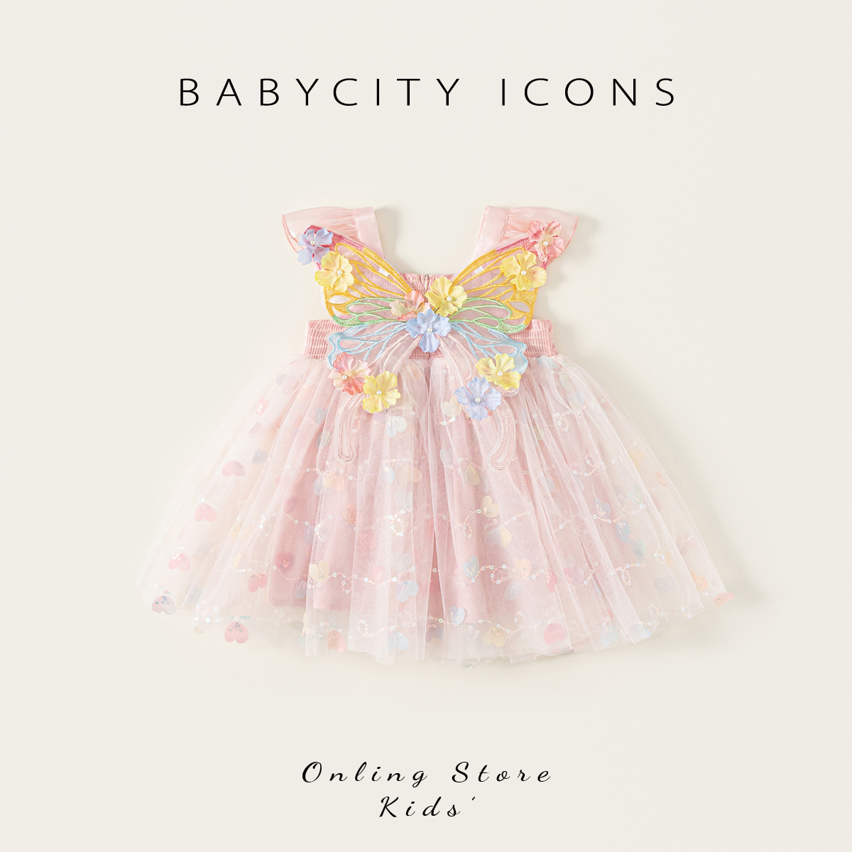 网纱裙小女孩时髦裙子夏装 贝贝城公主裙女童2025新款 洋气女宝飞袖