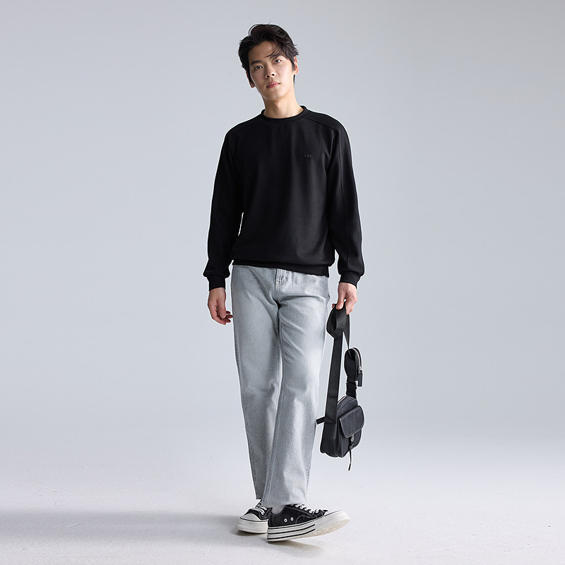 内搭宽松纯色白打底衫 t恤男秋冬季 加绒圆领卫衣 420G重磅长袖 美式