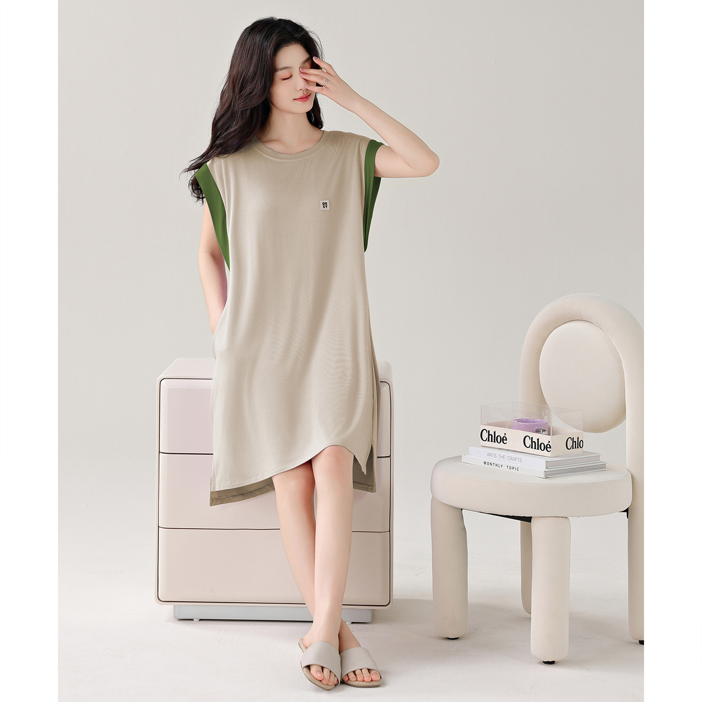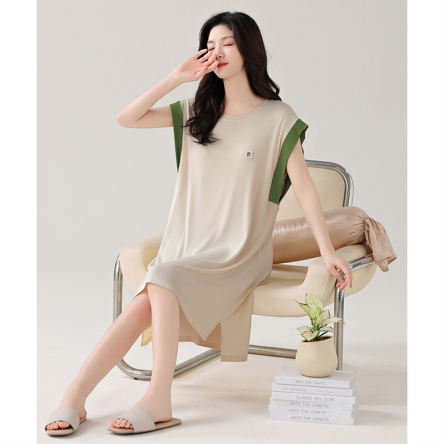 蕉内棉棉300Sleep女款 女士吊带睡裙 睡衣带杯带胸垫莫代尔冰丝短袖