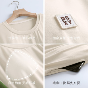 短袖 新款 裙子绵绸加大码 棉绸睡裙睡衣夏天2024年春秋季 人造棉 薄款