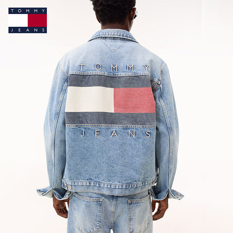 Tommy25秋冬新款 复古风后背大旗标刺绣翻领牛仔外套 男女纯棉美式