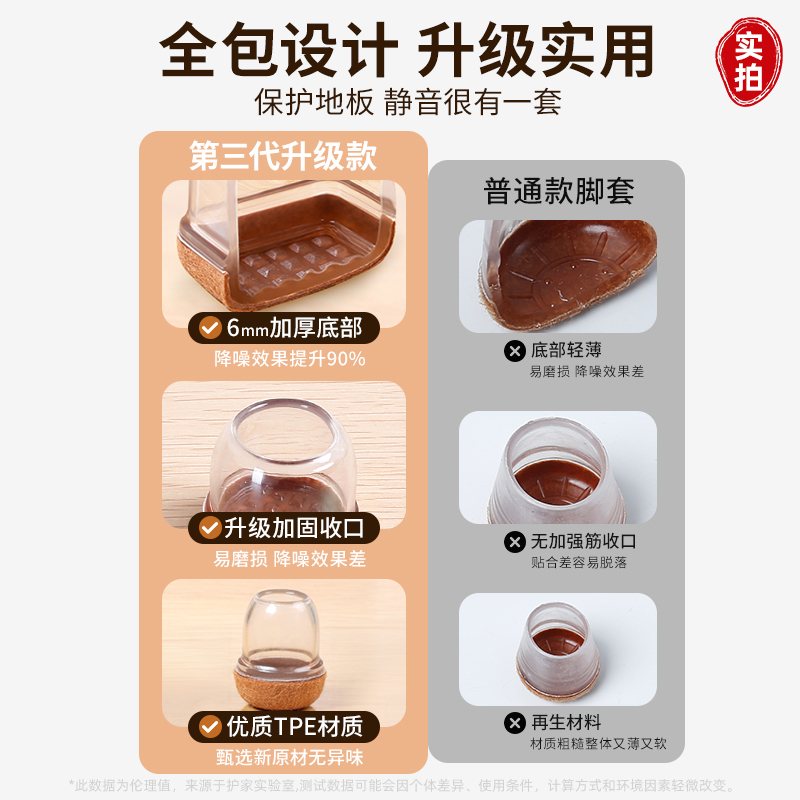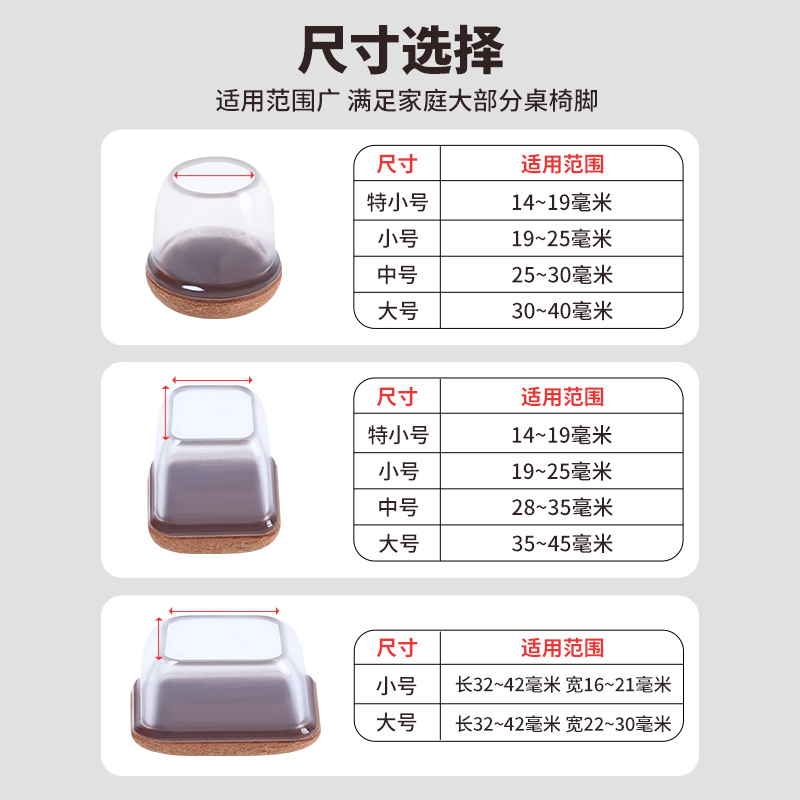 蚝宅配凳子静音脚垫桌脚加厚耐磨毛毡脚垫桌实木椅子脚套腿套硅胶