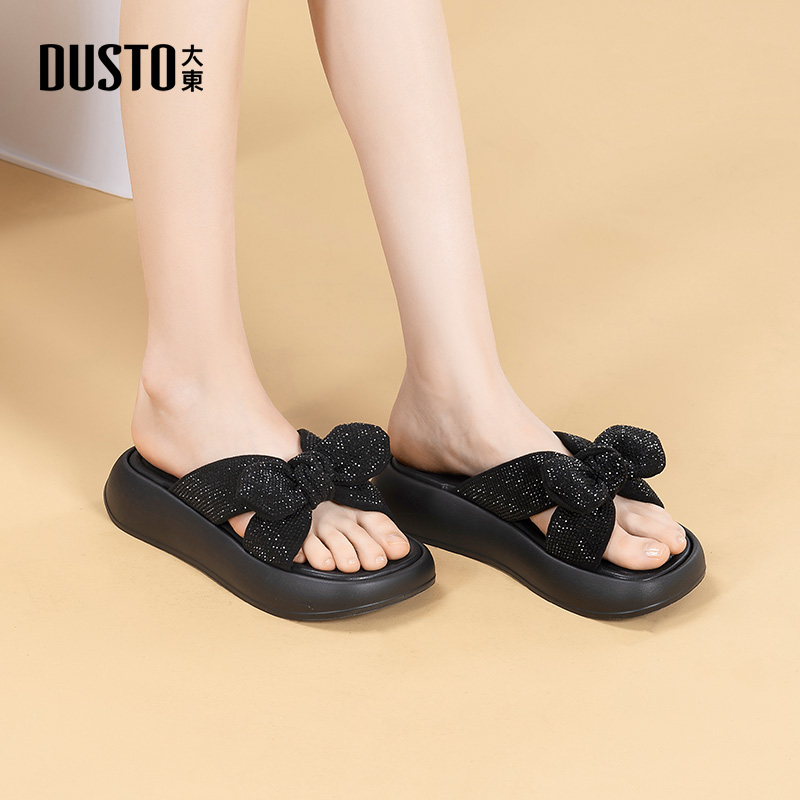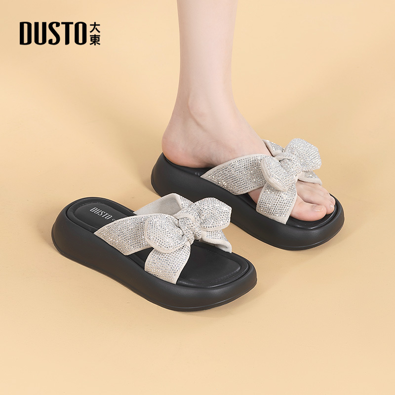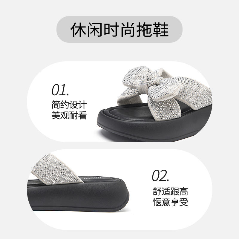 优雅平底中跟蝴蝶结外穿一字凉拖鞋 大东拖鞋 时尚 新款 女 女2025夏季