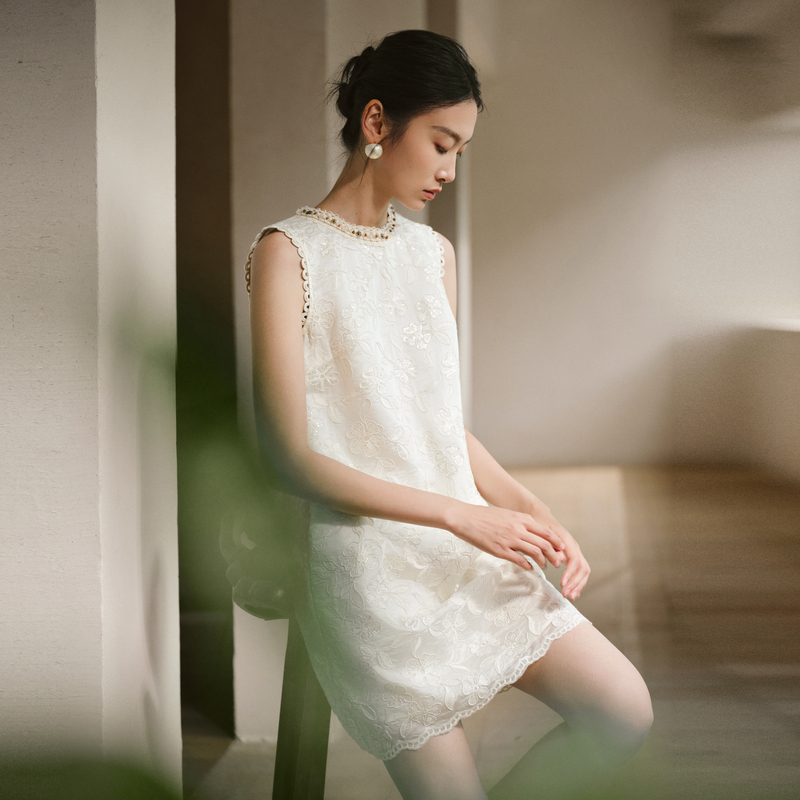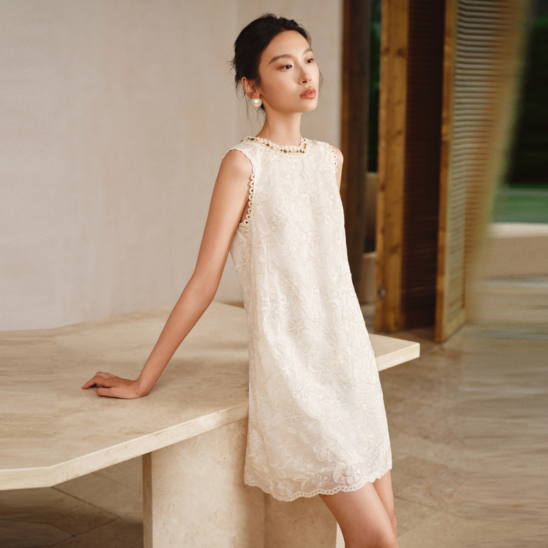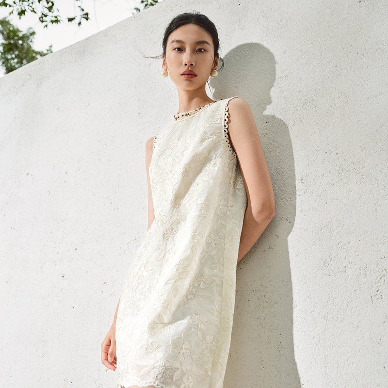 新款 简约莱赛尔柔软提花背心连衣裙2025夏季 圆领修身 水云间女装