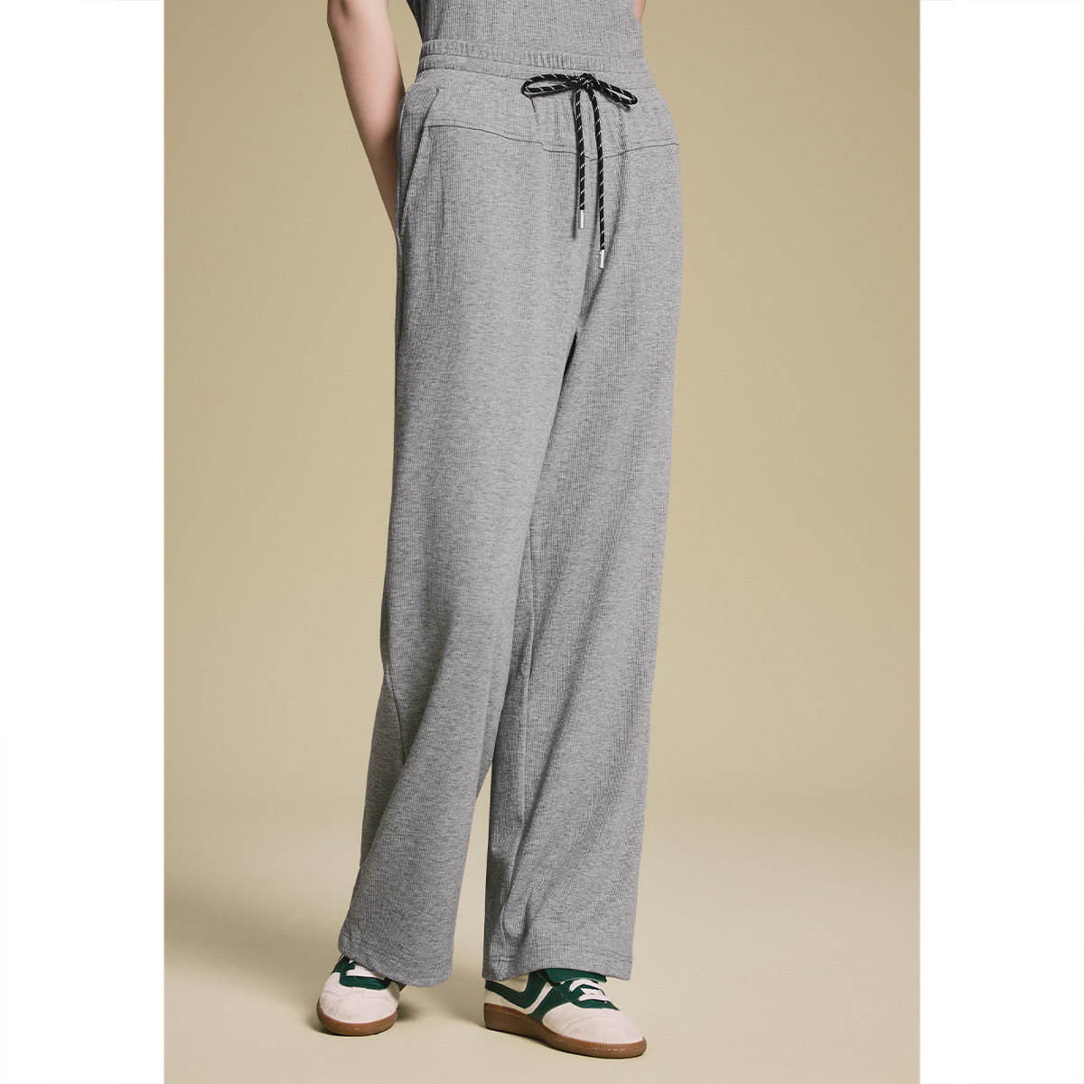 小个子春秋针织裤 高腰休闲加绒阔腿裤 女秋冬2025年新款 白色糯米裤