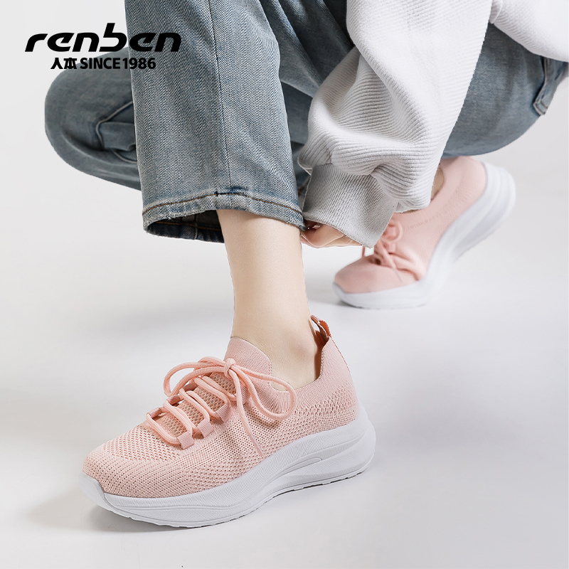 女款 百搭休闲跑步鞋 2025春季 网面减震舒适时尚 新款 人本黄色运动鞋