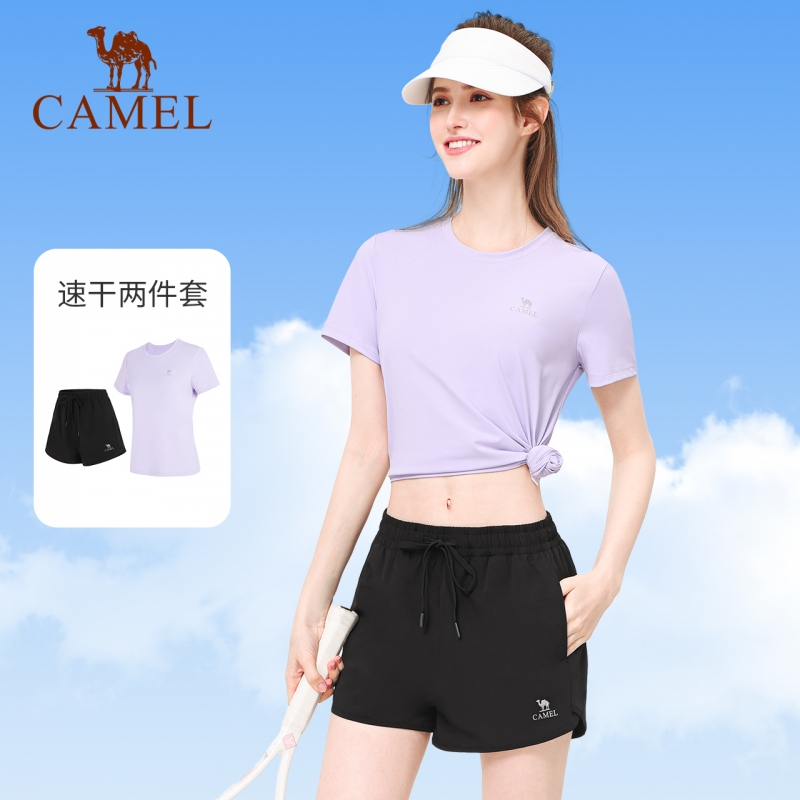 健身服透气速干训练服短袖 骆驼瑜伽运动套装 新款 春季 两件套 男女款