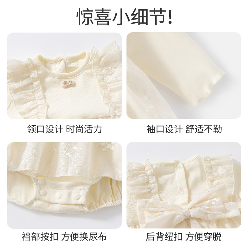 班喜迪婴儿衣服秋装 外出包屁裙 洋气连体衣女宝宝公主包屁衣春秋季