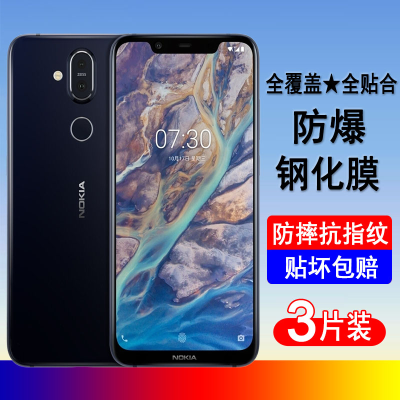 1131全屏覆盖防爆玻璃屏幕保护膜透明无边高清膜抗蓝光贴膜 8.1手机膜TA 适用诺基亚X7钢化膜nokia