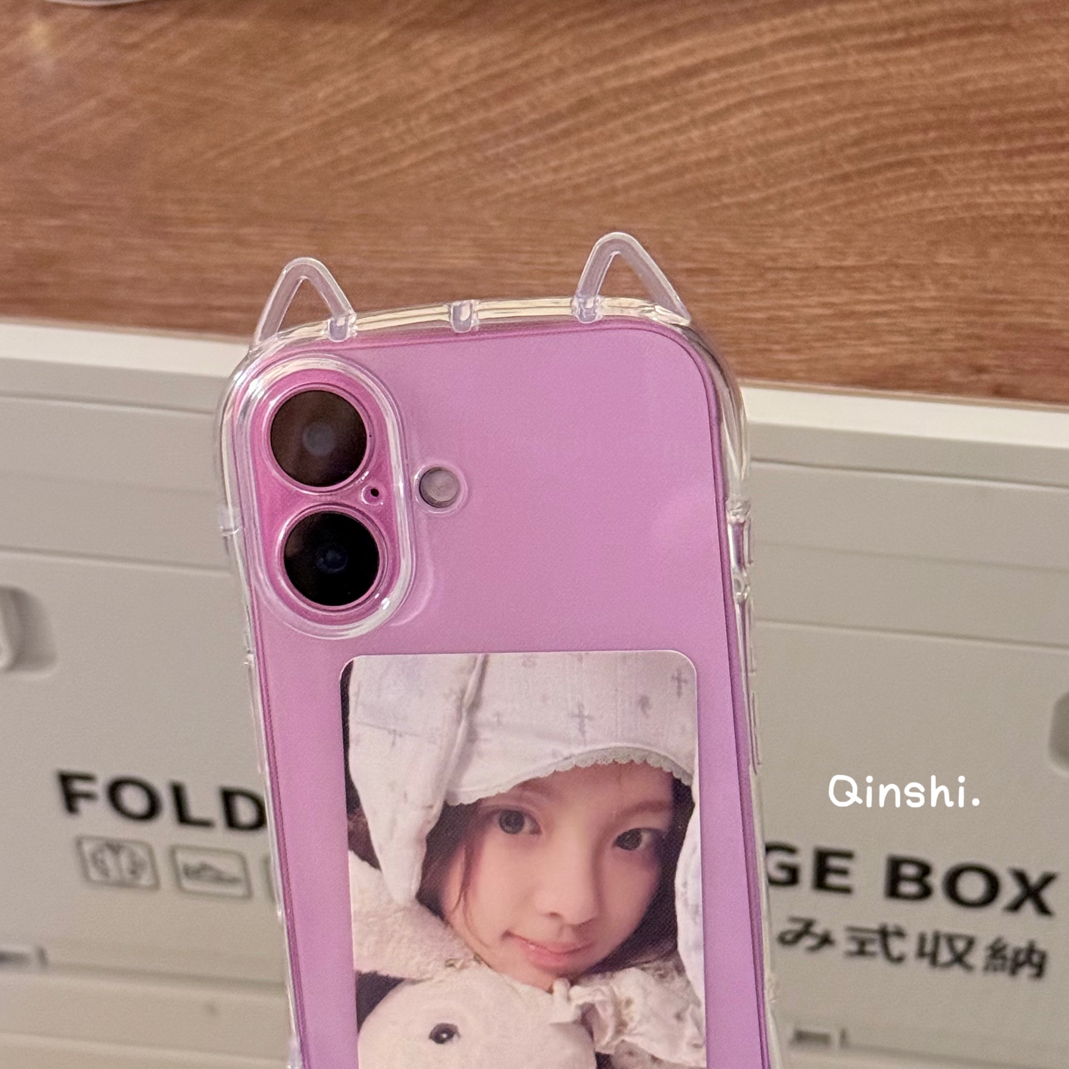 勤仕 14情侣13透明DIY定制小卡照片12防摔plus软壳 ins风可爱猫耳朵挂件适用苹果16promax手机壳iphone15新款