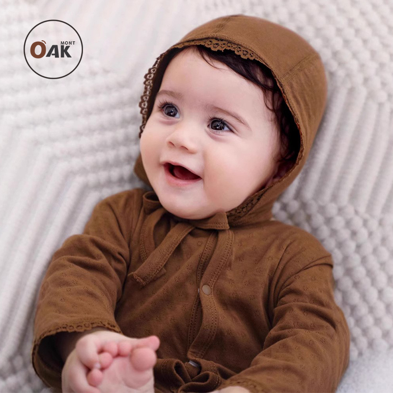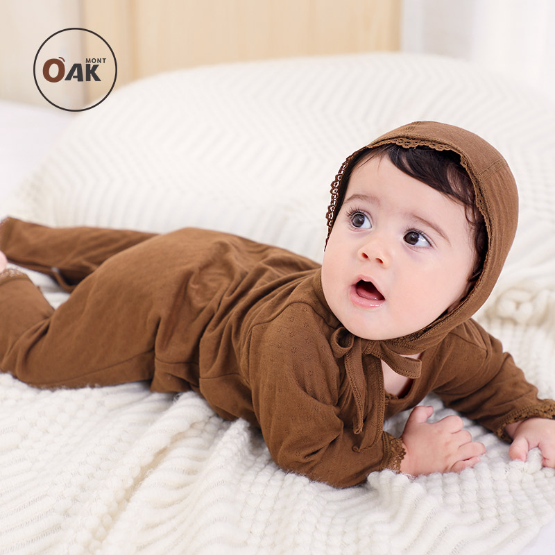 防蚊 纯棉抗菌打底衣百天衣服哈衣宝宝长袖 Oak mont婴儿连体衣秋装
