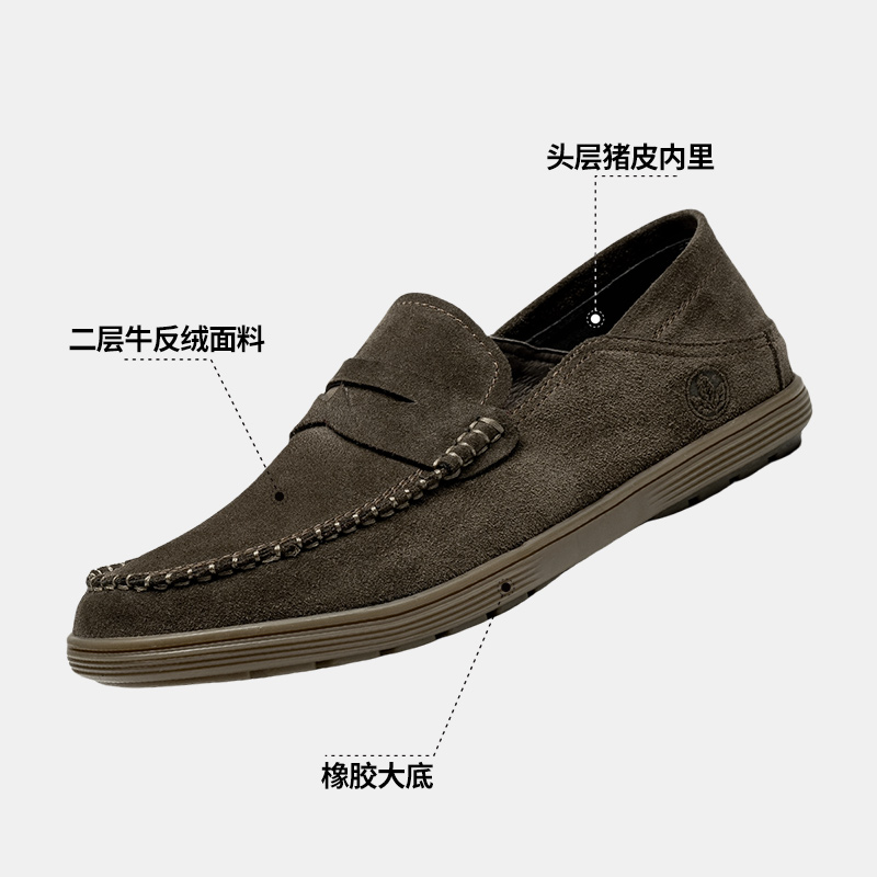 休闲皮鞋 软底透气鞋 2025新款 男一脚蹬懒人豆豆鞋 子 乐福鞋 枫叶男鞋