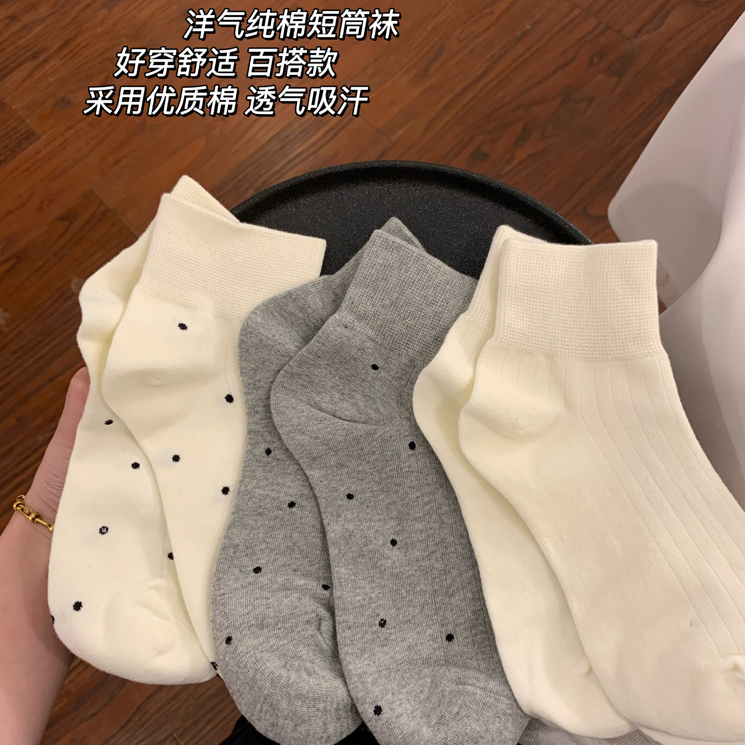 全棉短袜子女春秋季 中短筒袜无骨 纯棉吸汗防臭抗菌透气运动夏薄款