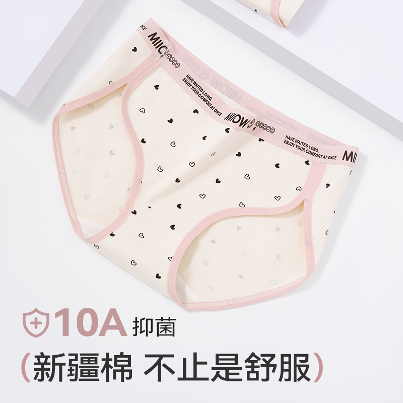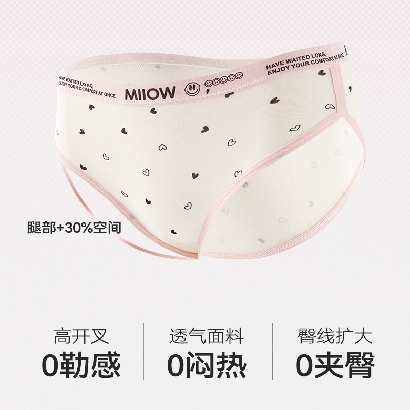 猫人纯棉内裤 女士高开叉不勒腿纯棉抑菌裆包臀甜辣运动风少女内裤