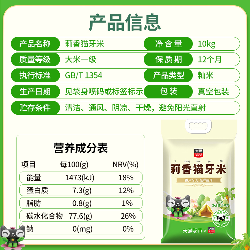 新米 太粮莉香猫牙米10kg长粒大米真空20斤装 下拉详情页享特价