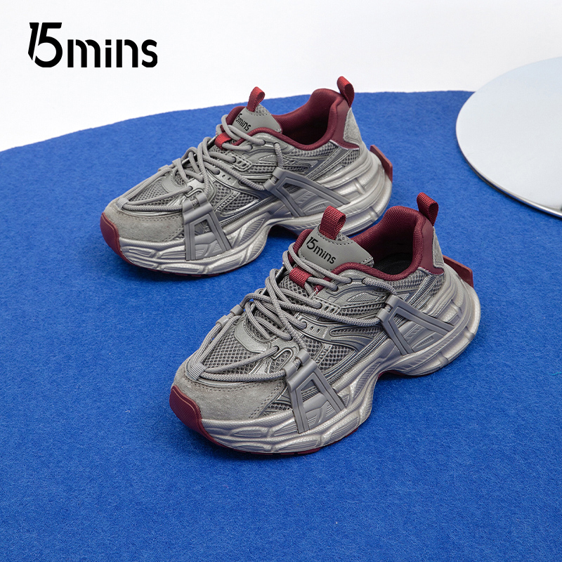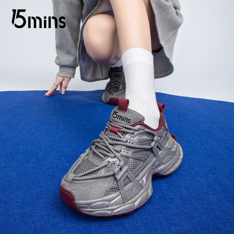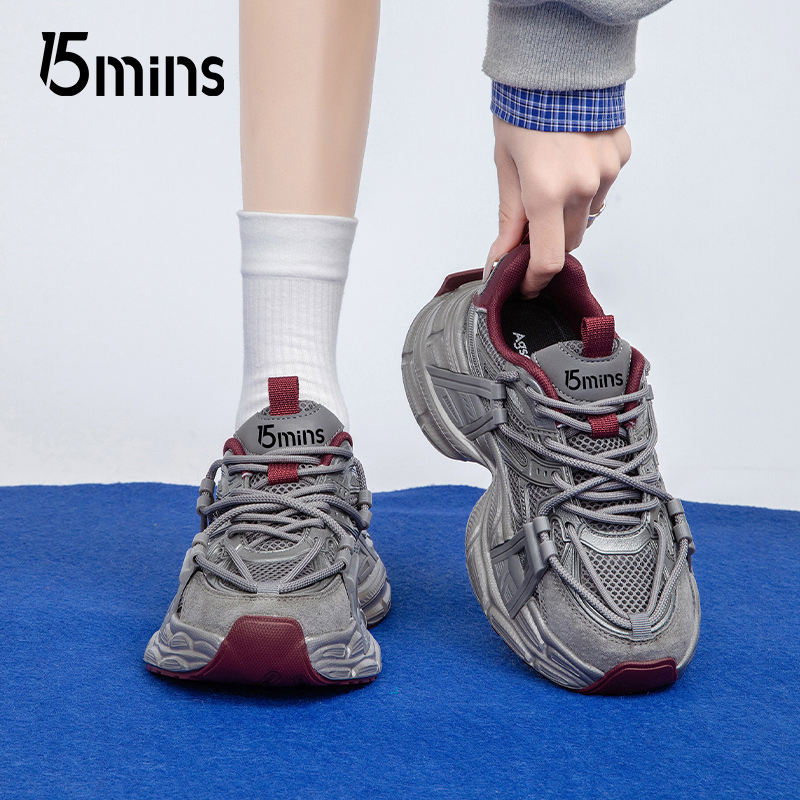 女款 运动鞋 增高2025春季 复古显脚小爆款 新款 15mins厚底灰色老爹鞋