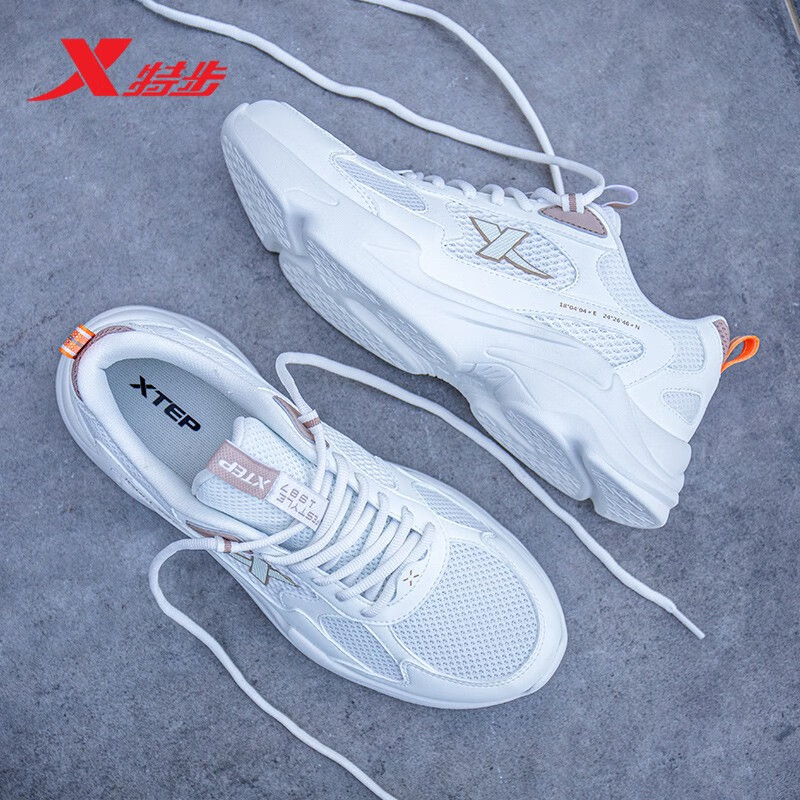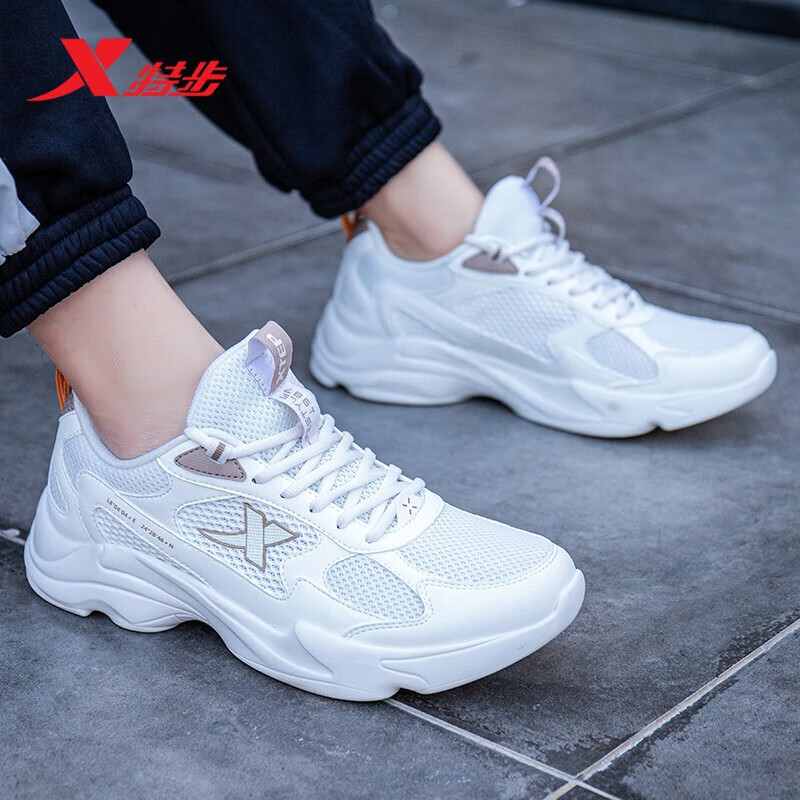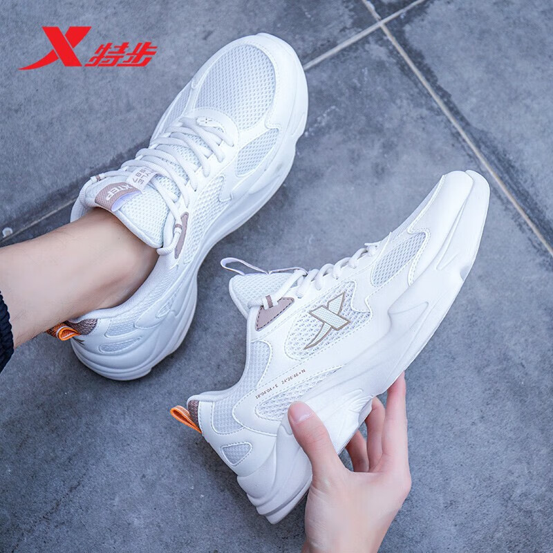 厚底老爹鞋 2025新款 轻便跑步鞋 秋季 特步男鞋 透气网面休闲鞋 运动鞋