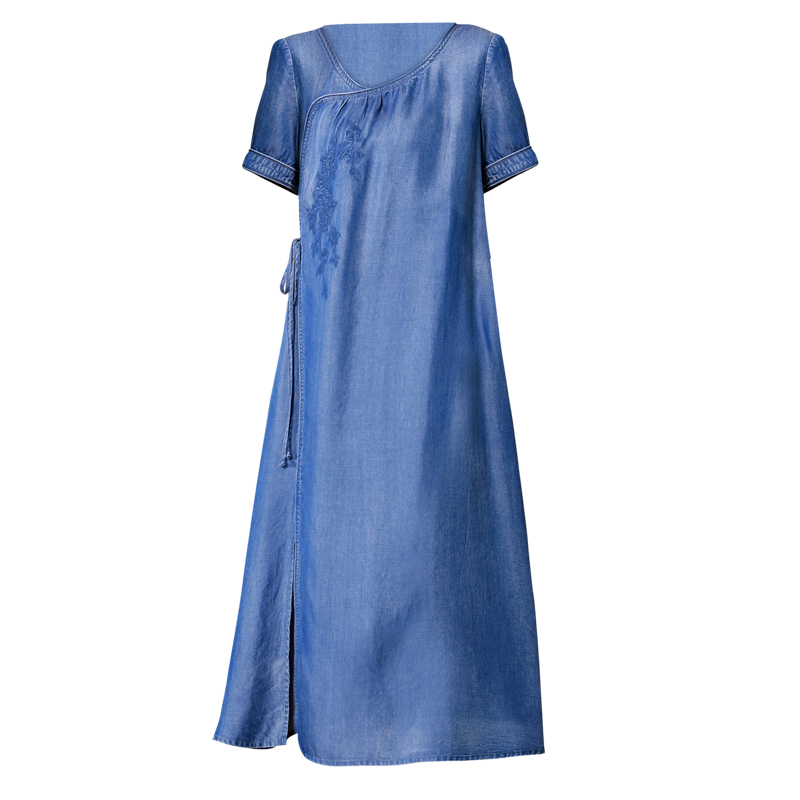 佐丹奴休闲风连衣裙女假两件弹力拼色收腰圆领短袖 长裙女05464473