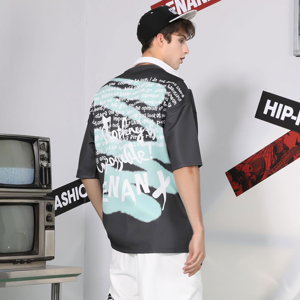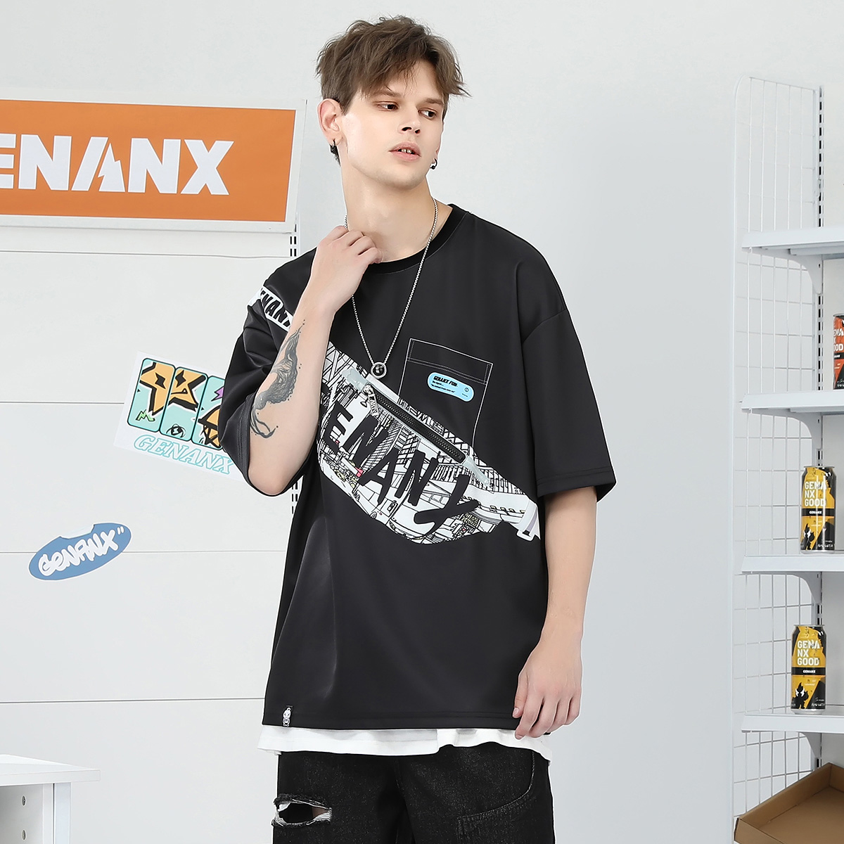 多彩t恤男 情侣五分袖 GENANX闪电潮牌短袖 上衣男胸包印花夏季