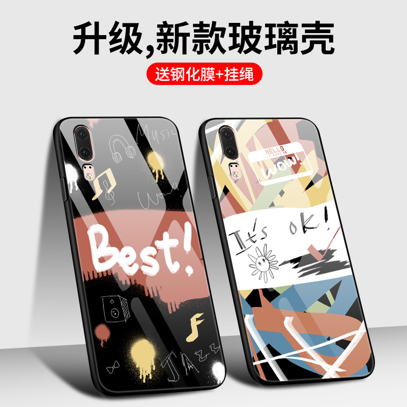 ins风闺蜜 ALOO男女情侣新款 华为P20手机壳P20Pro玻璃保护p2Opor全包软边硬壳EML AL00防摔网红卡通涂鸦CLT