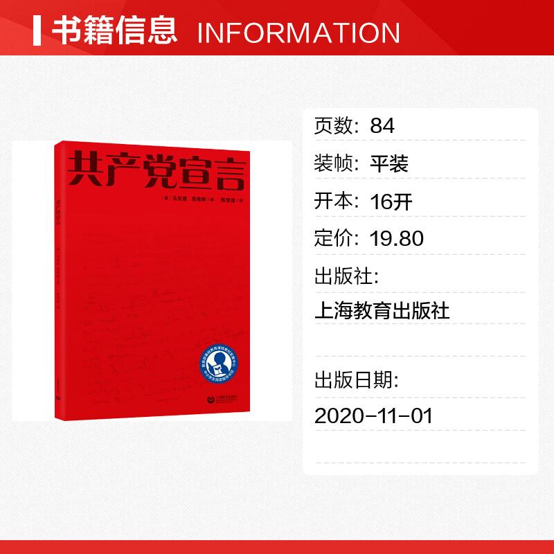 马克思恩格斯 马克思主义基本原理概论 共产党宣言陈望道 新华文轩 上海教育 新华书店正版 共产党宣言 畅销书排行榜 哲学书籍