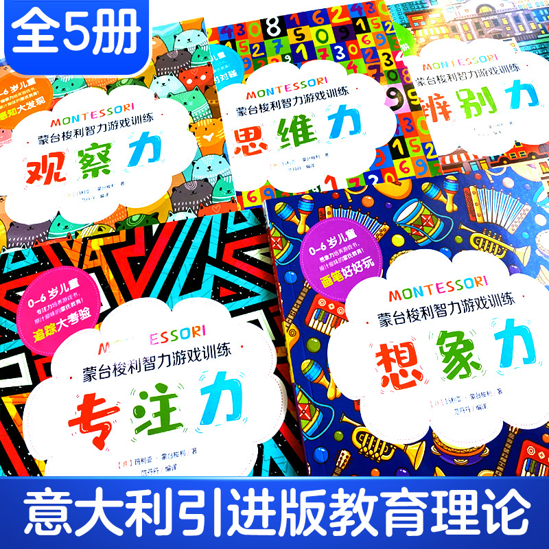 全5册蒙台梭利智力游戏训练书籍0 读 6岁蒙台梭利早教全书思维培养儿童专注力思维训练家庭训练认知蒙氏手册教育孩子育儿书籍父母
