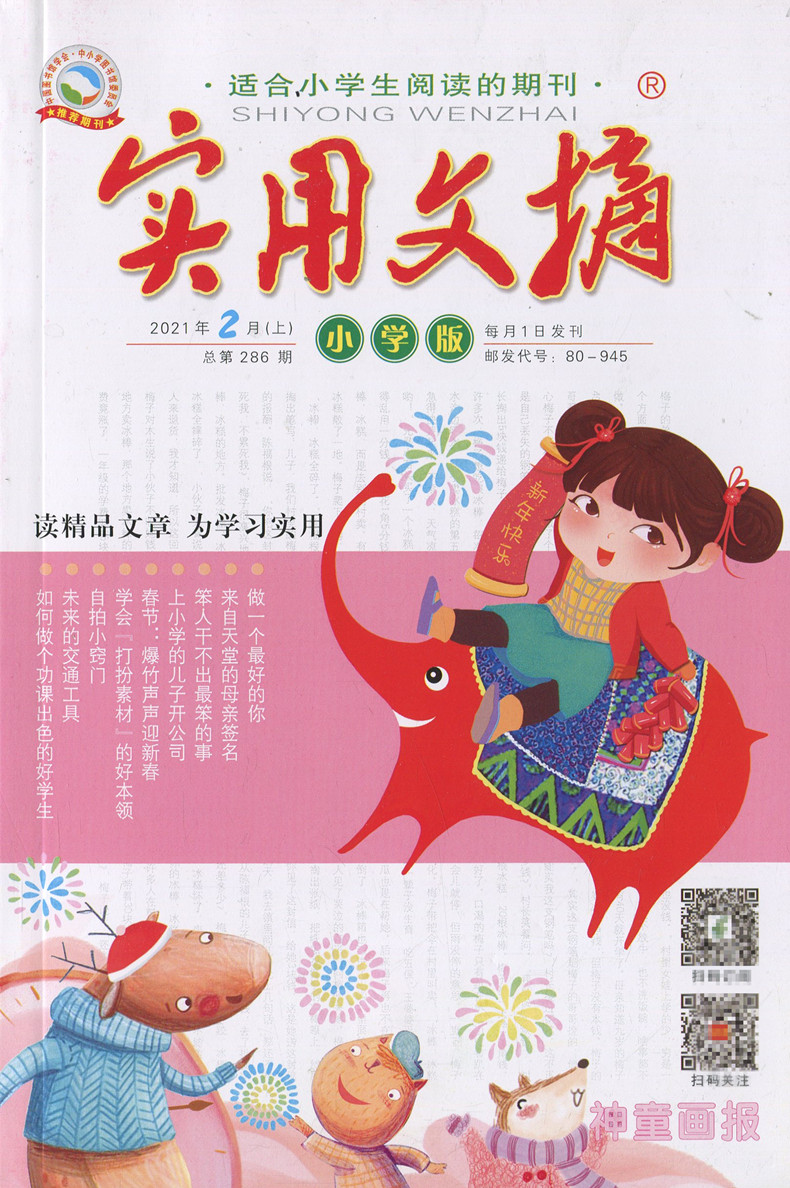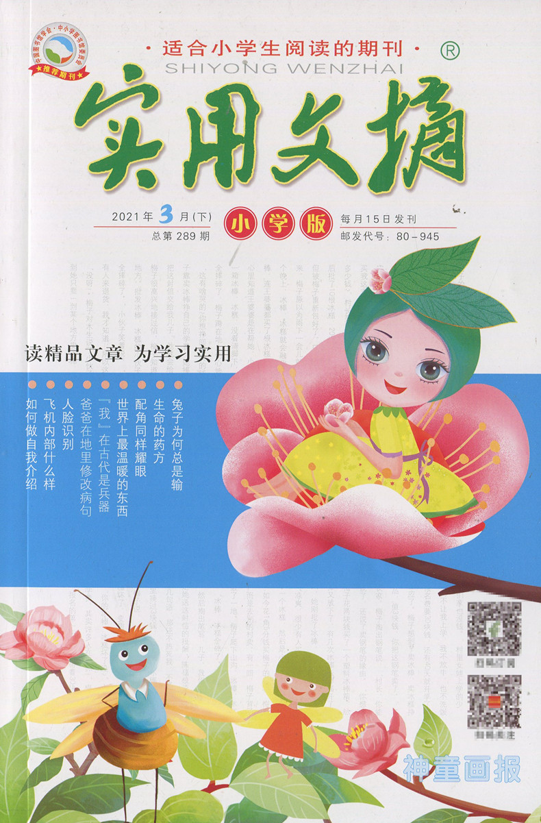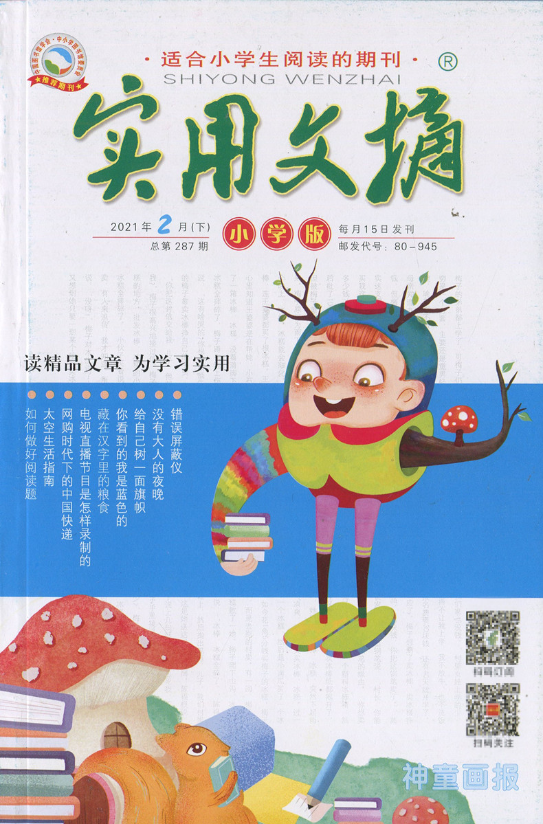 送2本共8本 3月上下打包 实用文摘杂志小学版 小学生作文素材精品文章课外阅读教辅学习期刊非全年合订本 2022年1