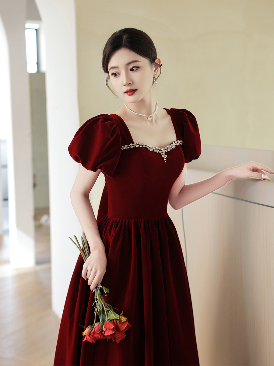 显瘦平时可穿 高贵气质酒红色长款 敬酒服新娘订婚礼服2025新款 春季