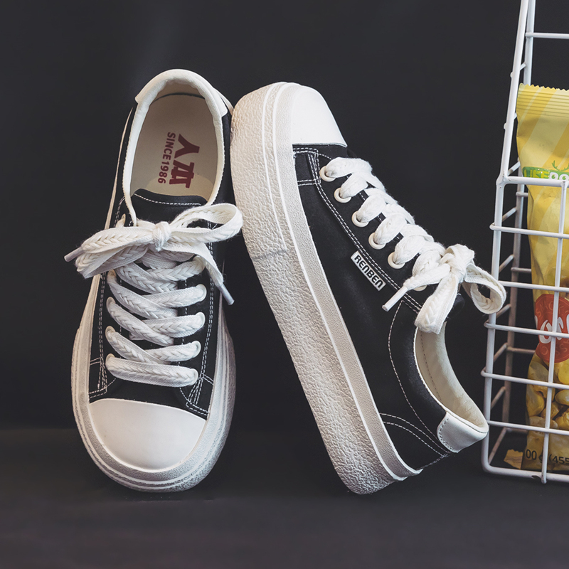 新款 低帮女鞋 百搭黑色韩版 潮流学生鞋 情侣 帆布潮牌休闲鞋 春秋季