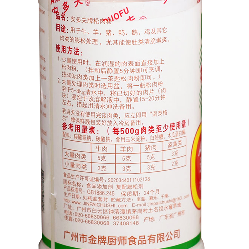 金泰安多夫454g木瓜粉调味料嫩肉粉松肉粉膨松剂嫩肉剂食用牛肉