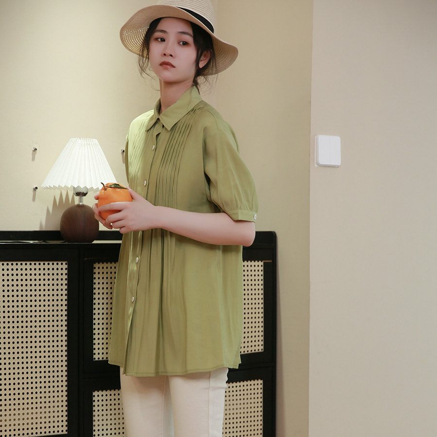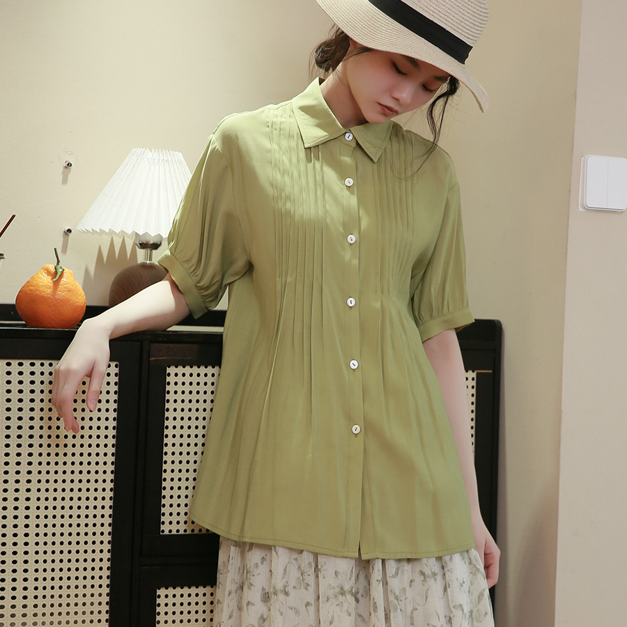 短款 新miu系穿搭荷叶边衬衣上衣小衫 夏 女25秋季 阔色蓝色格子衬衫
