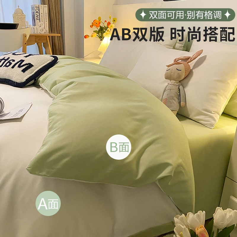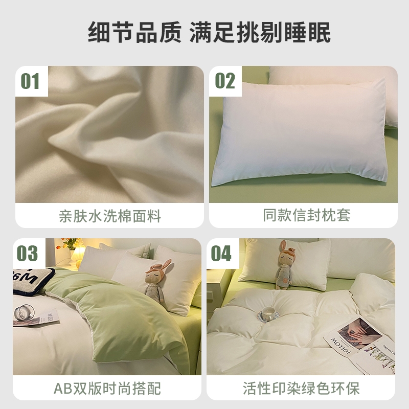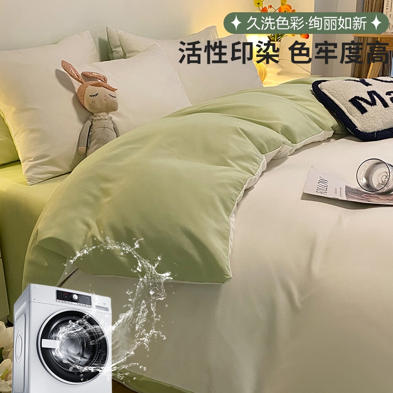 水洗棉床上四件套被套罩床单学生宿舍单人非纯棉全棉三件套2025夏