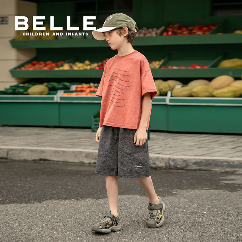新款 夏季 休闲裤 儿童宽松针织裤 百丽童装 子中大童五分裤 男童运动裤