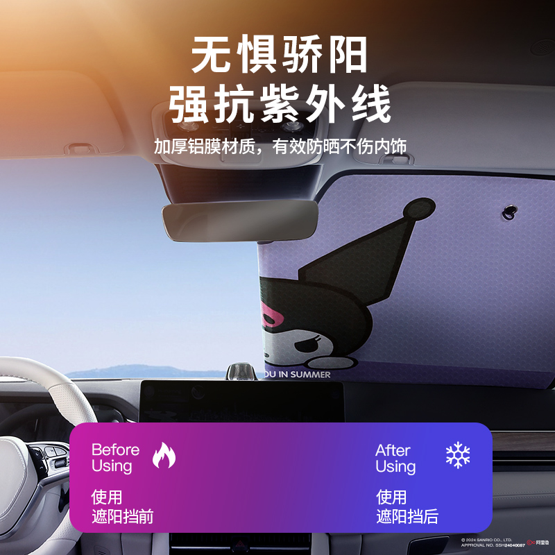 三丽鸥库洛米汽车遮阳挡前挡风玻璃遮阳板夏季 隔热防晒车内遮阳帘