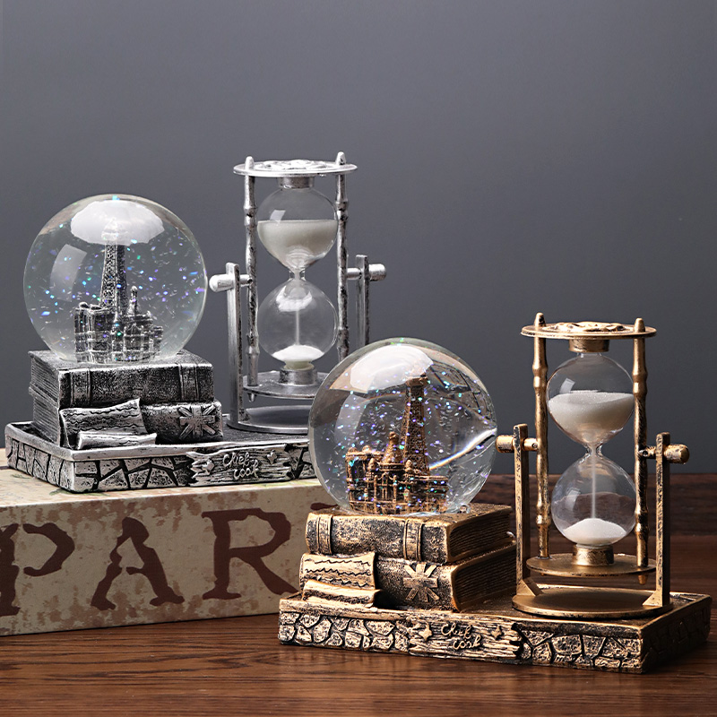 复古水晶球音乐八音盒沙漏计时器儿童摆件男友男生情侣圣诞节礼物