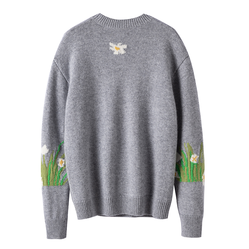 女士羊绒衫 春竹100%山羊绒季 针织衫 宽松气质无缝圆领套衫 新款