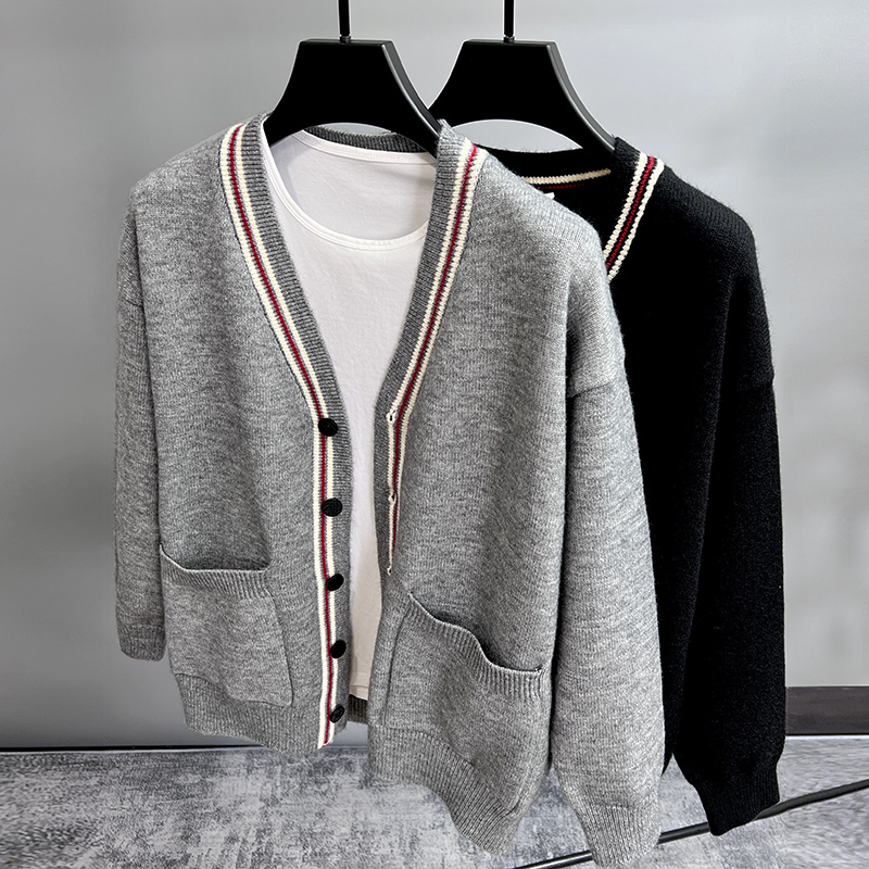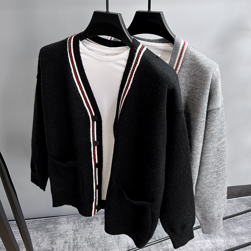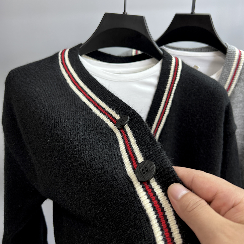 拼色针织毛衣男轻奢高级感休闲百搭开衫 简约时尚 外套 韩版 2025秋季