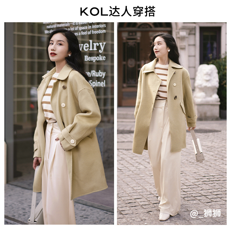 圆领大衣女小个子气质毛呢外套 高端羊毛双面呢短款 2025年春季 新款