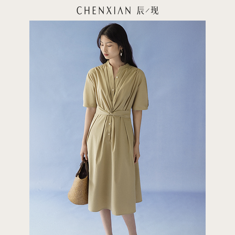 新款 裙女2025年秋季 钉珠木耳边显瘦连衣裙子 衬衫 预售黑色纯棉长袖