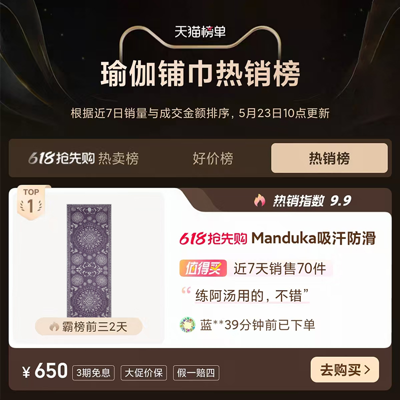 Manduka青蛙 Yogitoes瑜伽铺巾防滑吸汗隔脏可折叠便携瑜伽垫布