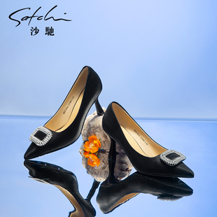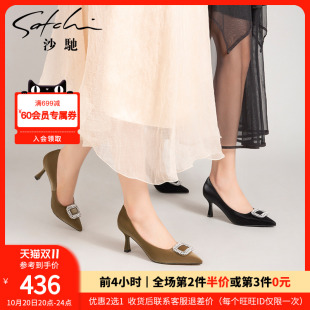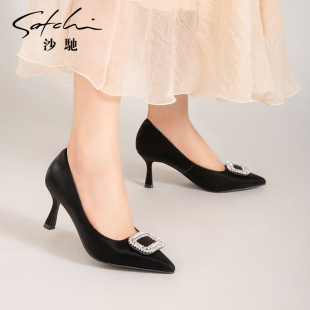 性感细跟高跟鞋 尖头方扣单鞋 女春秋季 职业通勤鞋 纯色新款 沙驰女鞋